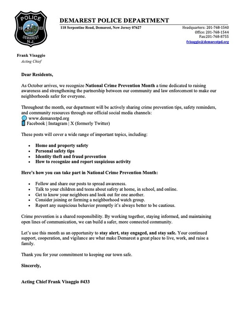 Stay connected to Demarest PD! Receive important information and updates through Nixle.
